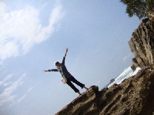 Saya dan teman-teman segera asyik berpose. Berpose rame-rame, berpose ala mendaki tebing dan pose-pose lain sampai kami teringat tujuan utama kami ke Green Canyon. Tidak rugi ke sini, biaya murah namun mendapatkan foto-foto yang indah. Namun,hati-hati dengan terjangan ombaknya. Cukup ganas dan mengingatkan kita untuk tidak masuk territorial laut pantai selatan.