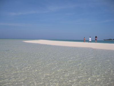 Sejak bertemu pasir putih halus dengan air laut jernih berwarna biru turqouise di Kepulauan Karimun Jawa, pantai-pantai lainnya berasa biasa. Ada yang bagus di Tanjung Aan, Lombok, namun warna air lautnya tidak gradasi hijau biru seperti di Pulau Cemara. Namun, akhirnya pantai Karimun Jawa mendapat pesaingnya, gosong besar di wilayah Derawan-Kaltim. Benar-benar cantik membuat lupa waktu. Oleh Pak Krusman, pengemudi boat sekaligus guide, kami disarankan untuk datang sore hari selepas Ashar. Alasannya, di sana panas banget. Kami bisa benar-benar gosong jika main di gosong saat panas hari.