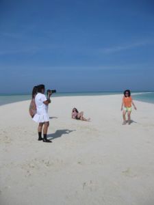 Akhirnya pada pukul 15.00 kami bersiap ke boat. Agendanya berenang-renang dan foto-foto lucu di gosong besar. Pantainya tidak jauh, hanya sekitar 15 menit jika naik boat.