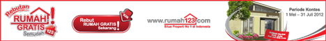 Bagi yang belum memiliki rumah jangan ragu untuk bermimpi dan memanfaatkan fitur-fitur di rumah 123 karena bakal mudah cari rumah. Apalagi situs ini tengah mengadakan lomba yang menarik. Rebutan rumah gratis. Wow! Rebutan rumah gratis ini sebagai kontes online terbesar yang diadakan oleh situs online properti di Indonesia. Hadiahnya tak tanggung-tanggung, rumah dan hadiah lainnya senilai 500 juta. Bagi yang tertarik bisa langsung berkunjung ke http://RumahGratis.Rumah123.com. Untuk mendaftar kontes ini tidak dipungut biaya dan terbuka bagi seluruh masyarakat Indonesia. Nah, siapa tahu Anda pemenangnya.