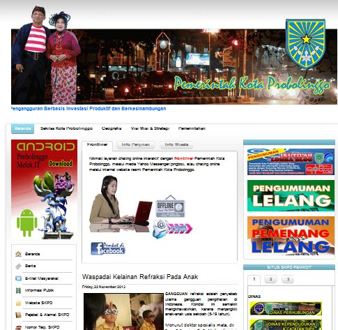 Website suatu pemerintah daerah merupakan salah satu langkah mendekatkan diri ke masyarakat. Keberadaan suatu website bagi suatu pemerintah daerah juga menjadi semacam perpanjangan tangan pelayanan publik. Seperti pemerintah daerah lainnya, Kota Probolinggo juga memiliki situs atau website yang berlokasi di alamat www.probolinggokota.go.id. Lalu seperti apa sih penilaian situs ini dari kacamata saya sebagai salah satu masyarakat awam?Sejak tahun 2003 dengan dikeluarkannya Instruksi Presiden No 3 tahun 2003 tentang Strategi dan Kebijakan Pengembangan e-Goverment dan Panduan Penyelenggaraan Situs Web Pemerintah Daerah-Depkominfo pada 5 Agustus 2003, maka berbondong-bondong pemerintah daerah baik tingkat provinsi maupun tingkat dua membuat website.