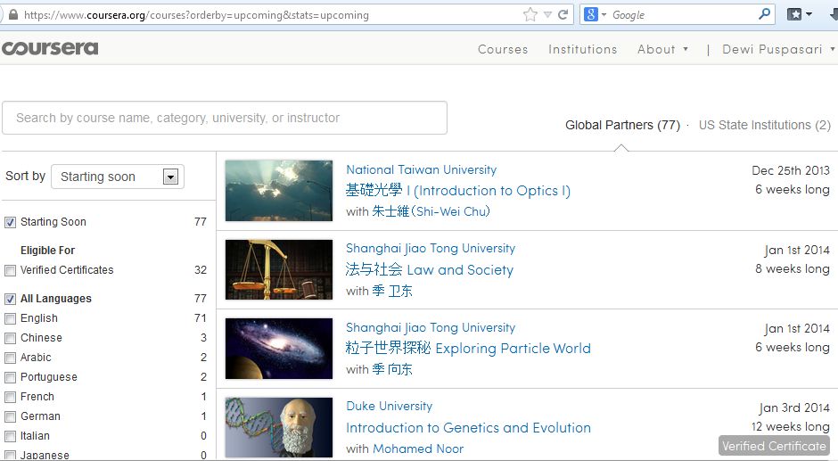 - Coursera. [http://coursera.org]. Diakses pada 22 Desember 2013