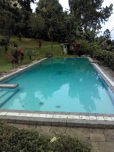 Oh ya di sini ada kolam renang yang cukup besar, kolam ikan, taman, dan ayunan sehingga cocok untuk mengajak anak-anak. Untuk kamar yang menghadap kolam renang adalah kamar yang terbaik. Dipannya besar dan di kompleks hanya ada 4 kamar dengan sewa perkompleksnya Rp 900 ribu atau Rp 225 ribu/kamar.