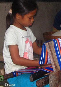 Wah ternyata menenun itu susah, perlu menghafal motif dan benang dan bikin pegal jika tidak terbiasa. Ooh makanya para penenun di sini dilatih sejak kecil sehingga mereka ahli setelah bertahun-tahun. Bukan suatu ketrampilan yang instant.