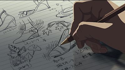 Setiap hujan turun mereka bertemu. Tidak disangka-sangka wanita tersebut kemudian menghadiahinya sesuatu yang berharga. Sebuah buku shoes handmade yang tebal dan kaya petunjuk. Buku yang bisa membawa mimpi Takao untuk menjadi kenyataan. Siapa wanita tersebut? Apa makna tanka tersebut?Dan apakah mimpi Takao menjadi pembuat sepatu akan terwujud?