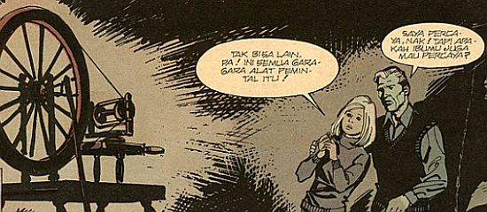 Memang ceritanya agak dibuat dramatis dan berhasil membuat saya jengkel dengan kawan Anita yang sirik dan melakukan berbagai hal yang membahayakan nyawa Anita. Untunglah Anita punya sekutu yang ayahnya yang terus meyakinkan ibunya agar membuang alat pemintal benang tersebut.