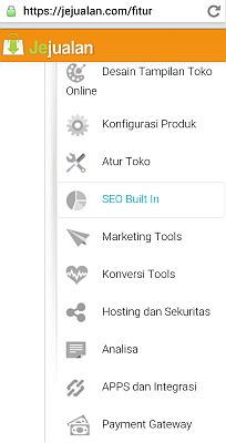 Fitur yang ditawarkan oleh Jejualan.com adalah desain tampilan toko online, konfigurasi produk, atur toko, SEO built in, alat pemasaran, perangkat konversi, hosting dan sekuritas, perangkat analisa, APPS dan integrasi, serta payment gateway.