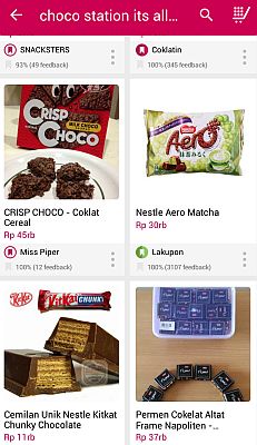 Ada cokelat dari merk terkenal, ada juga yang merupakan produk homemade. Ada minuman coklat, pasta cokelat untuk roti, cokelat kerikil, snack cokelat, permen cokelat, cookies, cokelat lokal, dan masih banyak lagi. Jadi bingung mau beli yang mana.