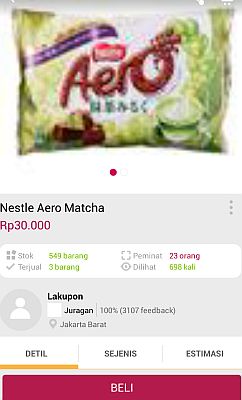 Lakupon nama penjualnya dimana ia sudah memiliki emblem juragam dan meenrima 3107 feedback. Ongkirnya Rp 9 ribu. Agar tidak berat di ongkir, saya beli dua produk cokelat green tea. Wah suami bisa girang nih dapat dua cokelat kegemarannya. Siap bayar deh.