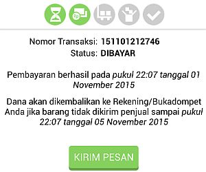 Setelah saya bayar, saya lakukan konfirmasi dan cek status di Bukalapak. Selesai deh. Semua proses tidak sampai 30 menit, hanya modal klik-klik pilih ini itu dan baru terakhir mengisi data pengiriman barang. Mudah dan cepat. Tinggal tunggu coklat dikirim untuk hadiah kejutan bagi suami.