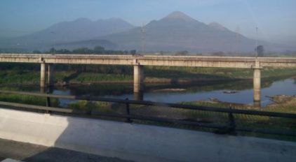 Sepanjang perjalanan ada saja latar pegunungan. Saya melihat tol baru sehingga bebas dari ancaman lumpur Lapindo, hamparan Sungai Porong juga hamparan sawah. Meskipun masih pagi, lalu lintas kendaraan sudah ramai.