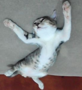 Nah si Mungil ini juga punya kemampuan berburu. Karena masih mungil maka sasarannya adalah kecoa atau lipas. Ia sudah memburu lebih dari lima kecoa. Bahkan ia berani memburu kecoa terbang, kecoa paling menakutkan.