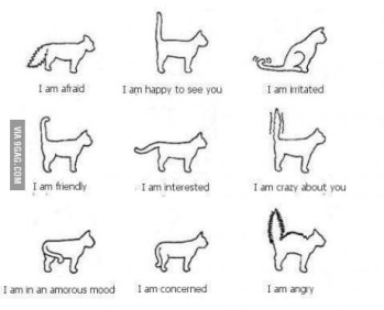 Kucing kampung memiliki emosi yang relatif mudah terlihat jika dibandingkan kucing ras. Seperti Nero dan si Mungil, aku bisa mereka-reka mood mereka hari ini, apakah lagi ceria, lagi sedih, ingin dimanja, atau lagi jail. Tatapannya itu kalau lagi jail wah bikin gemas sekaligus sebal. Berdasarkan berbagai situs seperti situs yang suka memajang meme humor, ekor kucing juga bisa dijadikan rujukan emosi kucing saat itu.