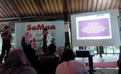 Tatu Ratna sari, S. farm., apt dan Ario Fajar, Head of Marketing Communications and Promotion PT Soman Indonesia menjelaskan produk SoMan