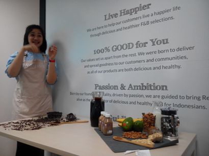 Hari Jumat (28/4) Andri dan Bena Vinsesa dari product development Rejuve mengajak para undangan untuk icip-icip kopi ala Rejuve ini. Kami juga diajak membuat sendiri smoothie yaitu Mocha High. Jadi barista ternyata seru juga.