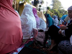 Tadi pukul 06.30 warga sudah berkumpul di lapangan yang dikelilingi hutan karet. Selanjutnya, dimulailah berbagai sambutan. Sambutan yang lama dari perwakilan MUI. Ada banyak nasihat dan nukilat ayat, sudah seperti ceramah. Isi sambutannya bagus dan sebagian menggunakan bahasa Indonesia sehingg saya paham, soalnya sering kali sambutan menggunakan bahasa Sunda. Oleh karena kelamaan, warga berupaya mengingatkan, tapi mungkin karena kebiasaan memberi ceramah maka sepertinya lupa dan keterusan.
