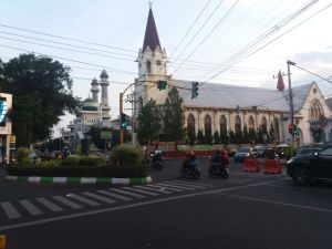 Bersebelahannya dua tempat ibadah ini menunjukkan toleransi beragama yang indah di kota Malang. Seringkali saat sholat Id, jamaah juga meluberi jalanan di depan gereja tersebut dan tidak pernah dipersoalkan. Sebuah bukti bahwa sejak dulu bangsa Indonesia saling menghargai dan memiliki toleransi beragama yang indah.