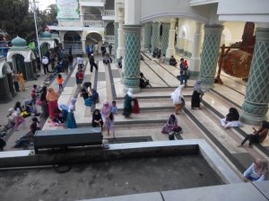 Tempat sholat untuk perempuan cukup luas. Setelah sholat Maghrib di sini, baru terlihat begitu banyak pengunjung yang beribadah di tempat ini. Mereka umumnya pengunjung taman alun-alun dari luar kota yang ingin mencicipi pengalaman beribadah di masjid besar ini.