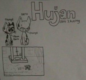 Maia, keponakanku, sejak kecil pandai menggambar. Ia lincah memainkan mouse menggambar lewat perangkat komputer. Ia juga suka menggambar dengan pensil. Kali ini ia mencoba membuat komik tentang kucing. Ya siapa lagi kalau bukan Nero dan si Mungil.