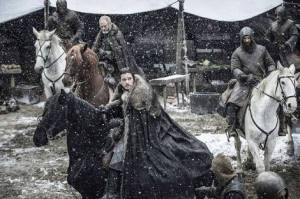 Jon Snow merasa gundah. Ia merasa dilema. Di satu sisi ia was-was akan terperangkap dan dipaksa mengikuti peperangan antara Dany dan Cersei. Di sisi lain ia perlu sekutu yang kuat untuk menghadapi pasukan wight dan white walker. Lagipula dragonstone memiliki banyak kandungan mineral yang bisa diolah menjadi dragonglass, senjata pembunuh white walker.