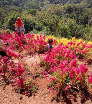 Tempat memelihara rusanya tidak besar, kebun buahnya saat itu seperti rambutan belum ada yang panen dan bisa dipetik. Ada kolam buatan tapi saat itu sayangnya kering. Ya, akhirnya kami menuju ke puncak dan terhibur dengan taman bunga yang asri dengan bunganya yang berwarna-warni.