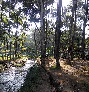 Semakin ke tengah, air mengguyur semakin deras. Di beberapa tempat nampak anak-anak warga desa setempat asyik bermain air. Lalu kami tiba di tempat yang lebih lapang, tidak ada sawah lagi. Tempat yang sangat tenang. Sebuah tempat yang pas untuk melakukan wisata spiritual.