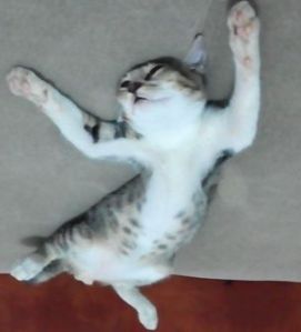 Kucing itu suka tidur seenaknya, baik dari segi pose maupun tempat tidurnya. Mereka itu mudah terlelap, bisa tidur di atas kap mobil, di pinggir jalan, atau di genteng. Kucing rumahan biasanya manja, mereka tidak puas hanya tidur di keset, mereka pun menjelajah tempat-tempat atau benda favorit majikannya. Kalian pasti pernah mengalami si kucing tiba-tiba menduduki dan tidur ketika Kalian sedang membaca koran atau majalah. Atau ketika sedang beribadah tiba-tiba si kucing dengan santainya melintas dan tidur di sajadah hahaha.
