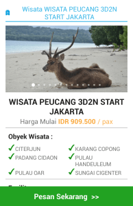 Untuk Jakarta pilihan paketnya sih beragam. Kalian bisa memilih paket keliling kota, paket keliling museum dan kota tua, ada paket wisata ke kepulauan Seribu. Pilihannya beragam seperti pulau Peucang dan pulau Pahawang, sehingga memberikan banyak pilihan alternatif.