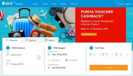Saat ini ada berbagai alternatif untuk memesan tiket pesawat. Salah satuya adalah Blibli Travel. Sebenarnya layanan yang diberikan oleh Bibli Travel tidak jauh beda dengan situs jasa travel lainnya. Di dalamnya ada pemesan tiket pesawat, kereta, dan hotel. Namun,nilai plusnya adalah lamannya yang proses loading-nya cepat, lamannya sederhana dan user friendly, juga beragam promo yang tersedia. Ada Blibli poin reward ketika membeli tiket pesawat tertentu yang bisa ditukar dengan voucher belanja. Asyik bukan?!