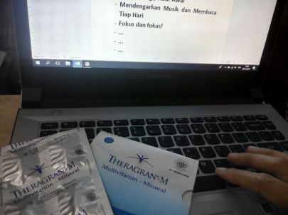 Lelah itu manusiawi, sakit itu yang harus dihindari. Jikapun tak mampu dilawan, maka proses sakit jangan lama-lama karena bakal merugikan diri sendiri dan sekeliling. Salah satu cara agar sakit jangan kelamaan yakni dengan minum Theragran-M. Yakni suplemen multivitamin yang juga kaya mineral. Di dalam setiap kapsulnya terdapat vitamin A, B kompleks, C, D3, dan E. Juga terdapat mineral seperti Iodium, besi, tembaga II, mangan II, Magnesium, dan Zinc sehingga membantu memenuhi kebutuhan vitamin dan mineral pada masa penyembuhan.