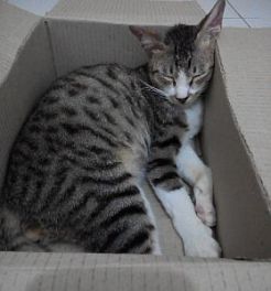 Ia kupanggil Mungil karena ia dulu kecil mungil. Bulunya tebal dan halus bak gumpalan kapas. Aku dulu was-was untuk memeliharanya karena sudah ada Nero. Lama kelamaan aku sayang kepadanya. Ia pun kuperbolehkan masuk dalam rumah dan punya kardus sendiri untuk tidur.