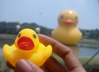 Favoritku berikutnya adalah gambar mainan bebek kuning lucu besar yang mengapung di pelabuhan hihihi lucu banget. Aku jadi ingat ada pemandangan serupa di danau Meikarta beberapa waktu lalu. Entah masih ada atau tidak giant yellow duck itu di kawasan apartemen yang baru dibangun itu. Fenomena ini ada dimana-mana dan menurutku menarik karena bisa membuat orang tersenyum, teringat akan akan mainan bebek kuningnya di bak mandi.