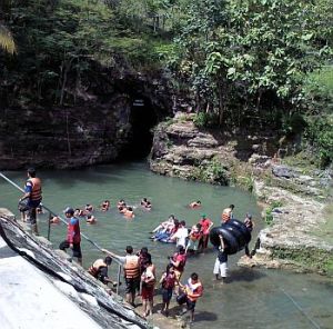 Warna air di Gua Pindul juga hijau tosca, menenangkan