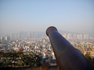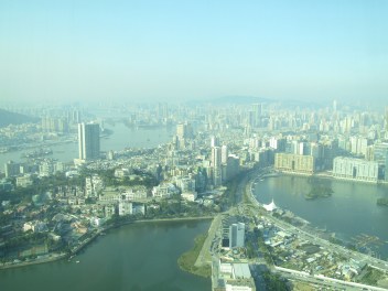 Warna panorama Macao dari Macao Tower dari atas kelihatan hijau tosca