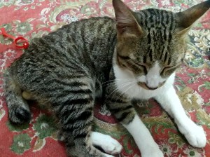 Tadi malam aku lembur. Tiba di rumah sekitar pukul sembilan malam. Saat hendak membuka pagar aku dikejutkan dengan kucing-kucing yang menyambutku. Ada Uprit dan Mbok Kucing juga dua anaknya yang suka mengamen di halaman rumah, Nero kemudian melangkah gagah masuk ke halaman dari jalan. Lalu ada yang menyeruduk kakiku.