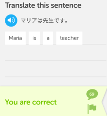 Rupanya agak susah untuk belajar bahasa Jepang di sini karena panduannya tidak banyak. Cocoknya belajar bahasa Jepang di Duolingo itu bagi yang sudah pernah kursus bahasa ini. Tapi jika belum sama sekali maka rasanya agak susah.