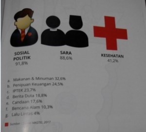 Dulu hoax lebih banyak digunakan untuk menyerang lawan politik. Dalam perkembangannya hoax merambah ke berbagai bidang seperti dalam hal makanan, info kesehatan, pengetahuan, sosial budaya, bencana alam, dan sebagainya. Diprediksi hoax akan semakin meningkat jelang pilkada serentak 27 Juni mendatang dan musim kampanye pemilu tahun depan.