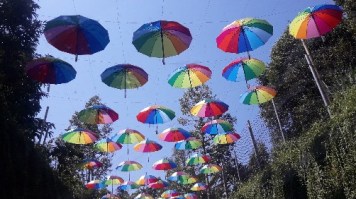 Ketika menuju obyek wisata utama kami disambut dengan payung-payung cantik beraneka warna. Wah instagrammable banget. Bisa jadi tempat untuk berfoto-foto.