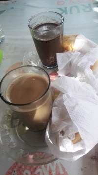Harga dua piring tempe penyet, dua pisang goreng dan dua kopi adalah Rp 39 ribu. Kenyang dan sedap.
