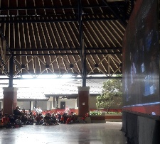 Oleh karena tiket sudah habis, banyak penonton dari mancanegara dan warga lokal yang kecewa. Namun, panitia sigap. Mereka mengubah sebuah pendopo luas yang biasa digunakan sebagai latihan menjadi lokasi nonton bareng. Ada layar besar di sana yang menampilkan acara dan pertandingan di dalam area gedung. Para penonton baik dari penonton lokal maupun mancanegara pun duduk dengan tertib dan berbaur. Tempat ini tak lama pun juga penuh. Penonton benar-benar berlimpah kemarin. Mereka juga tertib menjaga kebersihan, termasuk membuang air kemasan di tempatnya.