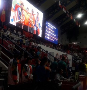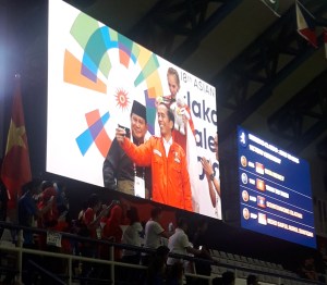 Inilah yang membuatku terhanyut ketika menonton pertandingan langsung. Atmosfernya luar biasa. Penonton tak letih bersorak-sorai. Mereka memberikan dukungan kepada atlet-atlet Indonesia dengan tulus sukacita. Yel-yel ‘Indonesia’ dengan latar tabuhan drum membahana. Menyusul lagu-lagu pemberi semangat.