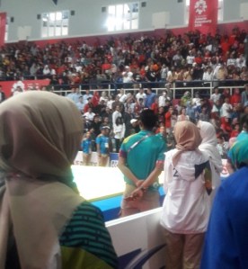 Acara final Pencak Silat kemarin begitu penuh sesak. Suasananya lebih semarak dibandingkan waktu aku kali pertama ke pertandingan perempat final.