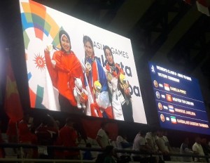Satu lagi yang bikin aku terharu. Aku menghormat bendera dan menyanyikan Indonesia Raya tiga kali. Kulirik atlet-atlet dan penonton mancanegara juga ikut berdiri memberikan penghormatan. Walau berbeda negara, sebagai warga besar Asia nilai-nilai saling menghargai tersebut masih tertanam. Berbeda-beda bahasa, kultur dan sebagainya tapi tetap satu Asia, inilah The Energy of Asia.