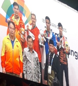 Menariknya pada dua pertandingan terakhir, dua atlet tersebut dari beda negara dan merupakan lawan, saling berpelukan di awal dan tiap babak. Mereka juga bersalaman di akhir pertandingan. Ketika di arena mereka merupakan lawan, tapi usai pertandingan mereka kembali jadi kawan. Para atlet Indonesia yang menang seperti Pipiet, Wewey dan Hanifan nampak akrab dan ramah kepada lawan-lawannya yang kembali jadi kawan pada saat penganugerahan medali. Mereka meminta peraih medali lainnya berfoto saling berdekatan. Momen keakraban tersebut terpancar.