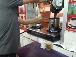 Omong-omong Sabtu lalu aku juga ngupi. Tepatnya kopi Aceh. Waktu itu kami mengadakan food tour sebelum nobar Aruna dan Lidahnya. Aku memilih kopi Aceh tubruk. Sedangkan kawanku, sesama admin KOMiK memilih kopi tarik.
