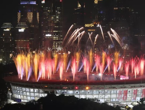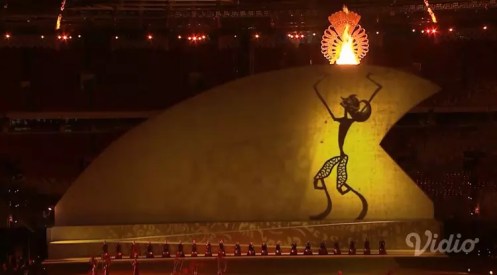 Aksi menyalakan obor oleh Jendi Pangabean dengan ilustrasi wayang raksasa Gatotkaca yang seolah-olah bergerak memerhatikan juga menakjubkan. Magis. Acara kemudian dimeriahkan dengan pesta kembang api dan lagu official Asian Para Games 2018, yakni ‘Song of Victory’ yang dibawakan Armand Maulana, Once, Vidi Aldiano dkk serta diiringi begitu banyak penari dengan beragam kostum.