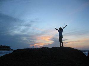Pantai kedua yang seolah-olah hanya menjadi milik kami ketika suasana menjelang senja di Pangandaran. Saat itu bukan musim liburan. Kami bermain di tepian pantai dengan gembira hingga matahari benar-benar terbenam. Kami puas bermain dengan air selama dua hari itu. Paginya kami menikmati pantai Karang Nini yang sepi. Waktu itu pengunjungnya hanya kami karena kami tiba jelang matahari terbit.