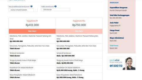 Ketika aku mencoba simulasi biaya premi asuransi rumah besarannya berkisar Rp 412 ribu- Rp 750 ribu untuk yang fit dan yang plus. happyHome plus jelas covernya lebih banyak dan lengkap.