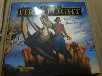 Buku ini berjudul First Flight. Rupanya ia adalah buku prekuel. Bukunya membuatku sedih, tentang ekspansi sebuah negeri tetangga Dinotopia yang memiliki mesin canggih. Mereka hendak menyerbu Dinotopia. Para dinosaurus dan manusia pun bersatu membela tanah airnya. Banyak korban dari dinosaurus menghadapi robot-robot tangguh ukuran raksasa. Aku sedih membacanya. Bagiku dino raksasa seperti T-Rex dan Pterosaurs yang ganas juga hewan yang mulia.