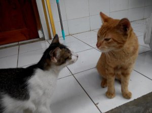 Akhir-akhir ini si Nero suka menghabiskan waktu di rumah. Biasanya ia habis sarapan atau makan malam suka berkeliaran. Tapi akhir-akhir ini ia semakin manja dan meminta perhatian. Ia kuatir rasa sayangku berkurang dan berganti ke tiga anak kucing baru. Si Kecil juga demikian. Ia mulai merasa iri.